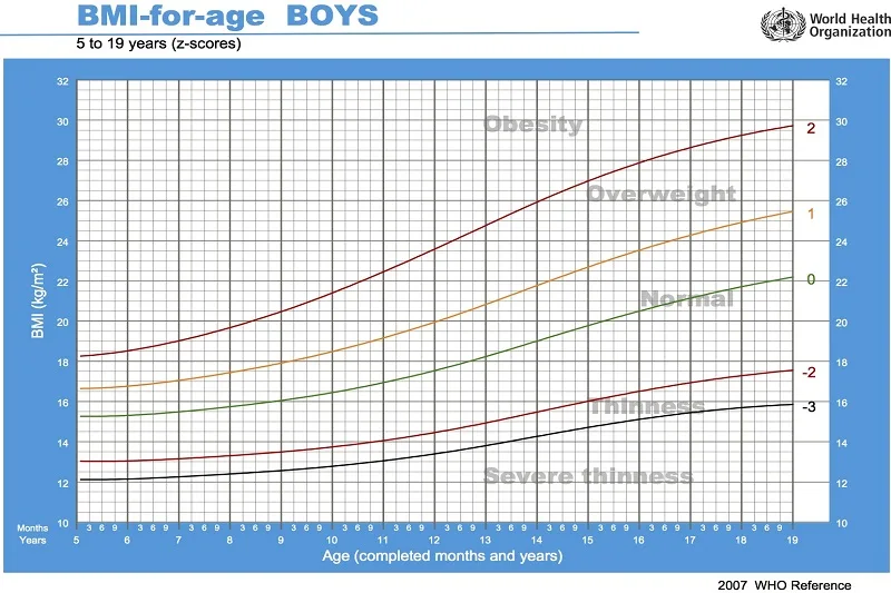 Biểu đồ tăng trưởng BMI của trẻ theo WHO